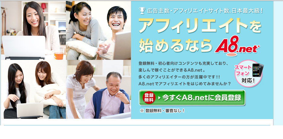 まず、ブログがなくても登録できる「a8ネット」に登録します。